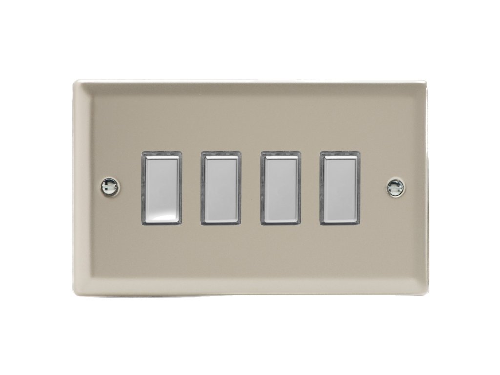 Tlačítkový vypínač IMPULSE - 4-modulový schodišťový (č.6) 1-pólový KLASICKÉ - satén / chromová tlačítka