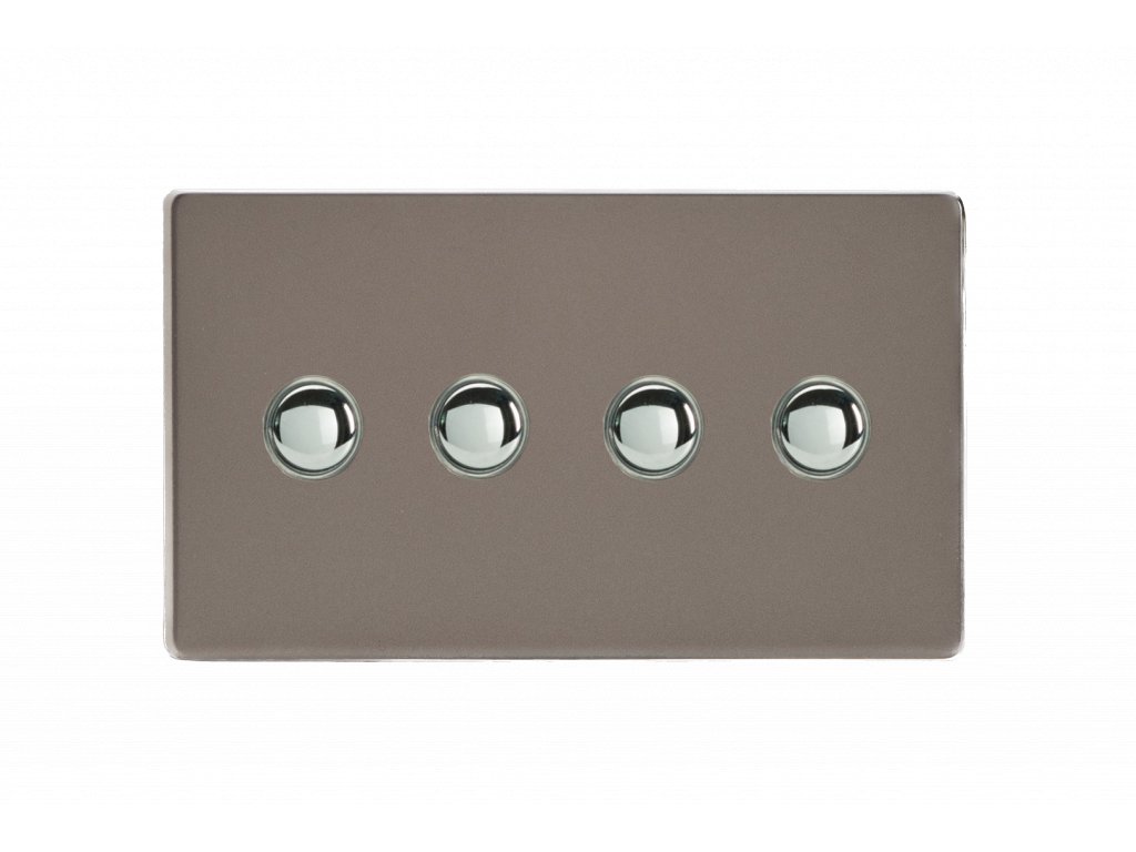 Tlaèítkový vypínaè IMPULSE - 4-modulový schodiový (è.6); jednosmìrný (è.1) 6A 1-pólový BEZROUBKOVÉ - cínová / chromová tlaèítka