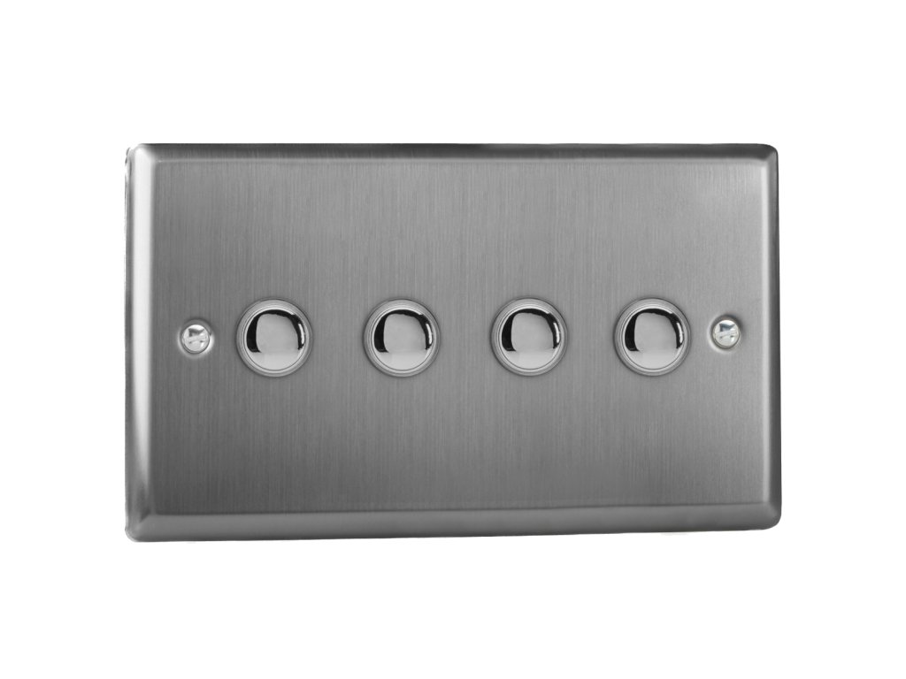 Tlačítkový vypínač IMPULSE - 4-modulový schodišťový (č.6); jednosměrný (č.1) 6A 1-pólový KLASICKÉ - kartáčovaná ocel / ocelová tlačítka