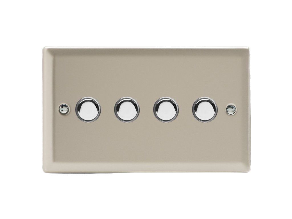 Tlačítkový vypínač IMPULSE - 4-modulový schodišťový (č.6); jednosměrný (č.1) 6A 1-pólový KLASICKÉ - satén / chromová tlačítka