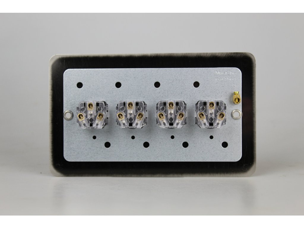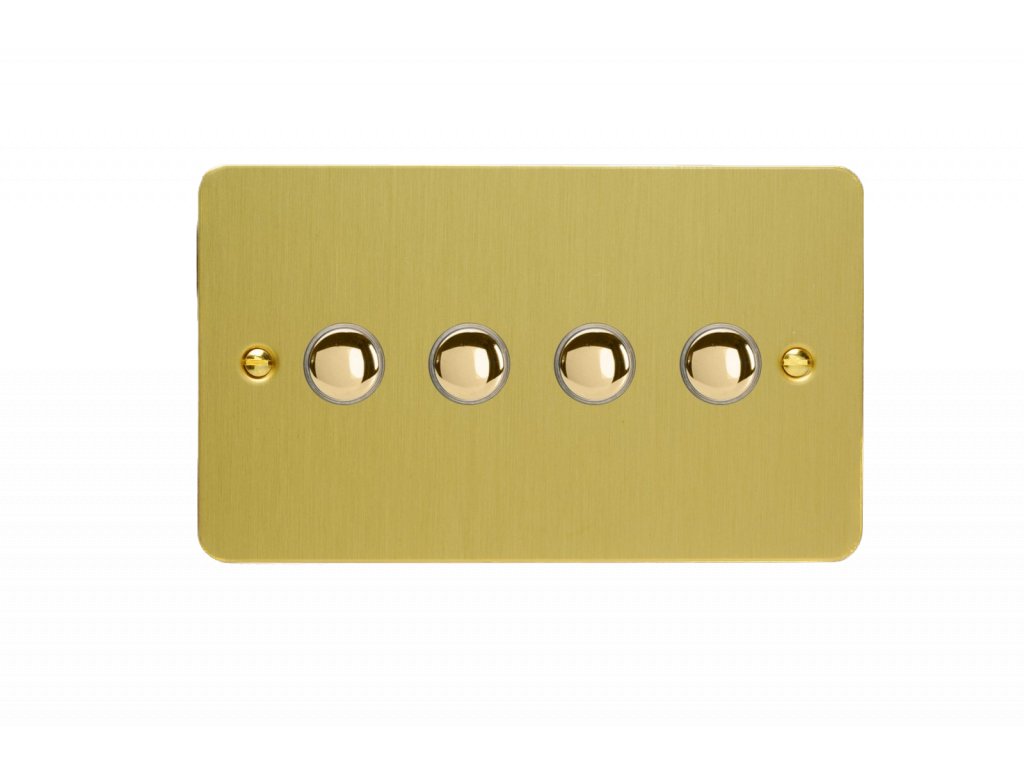 Tlačítkový vypínač IMPULSE - 4-modulový schodišťový (č.6); jednosměrný (č.1) 6A 1-pólový ULTRAPLOCHÉ - kartáčovaná mosaz / mosazná tlačítka