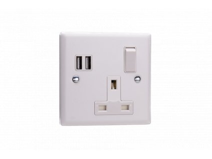 Síová zásuvka MAINS SOCKET - 2-modulový 13A 1-pólový britská zásuvka KLASICKÉ - køída bílá / bílá