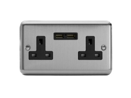 Síová zásuvka MAINS SOCKET - 2-modulový 13A britská zásuvka KLASICKÉ - matnì chromová / èerný