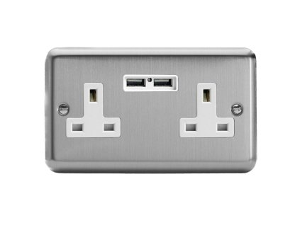 Síová zásuvka MAINS SOCKET - 2-modulový 13A britská zásuvka KLASICKÉ - matnì chromová / bílá