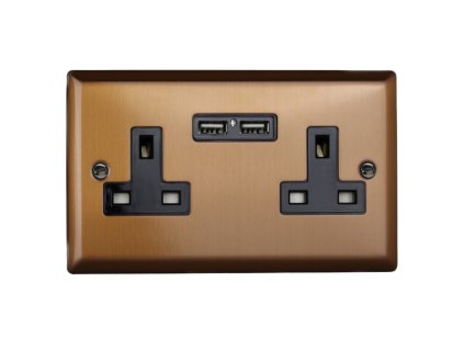 Síová zásuvka MAINS SOCKET - 2-modulový 13A britská zásuvka KLASICKÉ - kartáèovaný bronz / èerný