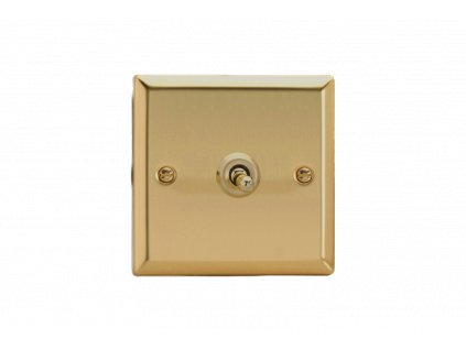 Páèkový vypínaè TOGGLE - 1-modulový schodiový (è.6); jednosmìrný (è.1) 10A 1-pólový BEZROUBKOVÉ - kartáèovaná mosaz / mosazná páèka