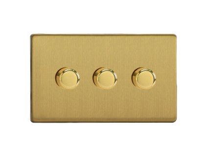 Rotaèní stmívaè DIMMER - 3-modulový - BEZROUBKOVÉ - Kartáèovaná mosaz